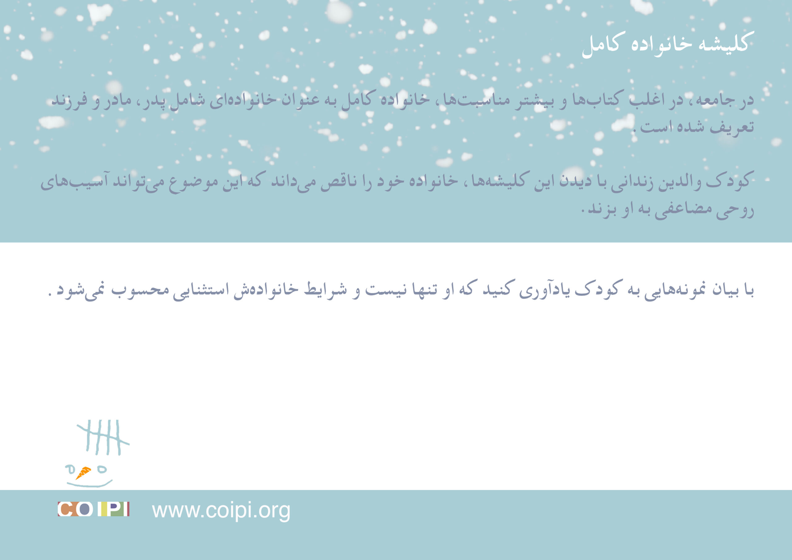 بیشتر مناسبتها، خانواده کامل به عنوان خانوادهای شامل پدر، مادر و فرزند تعریف شده است.